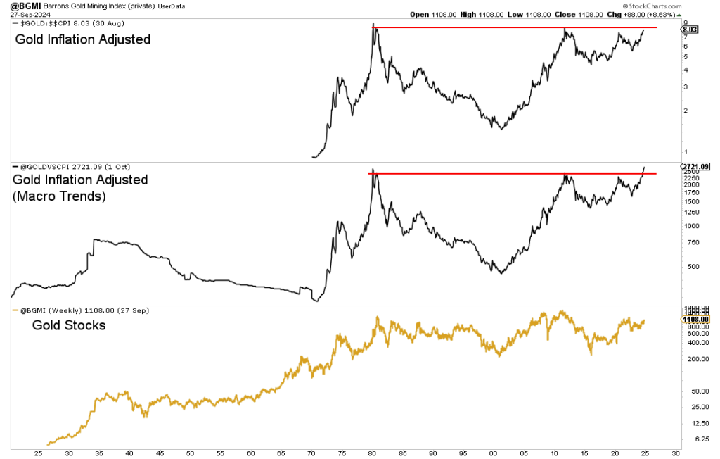 Gold stocks have broken out to new 16-month highs against the stock market.