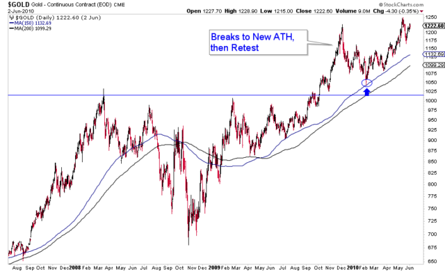 Gold gained 80% from its low in 2008 to its breakout in 2009, and 21% from the breakout to the first correction.