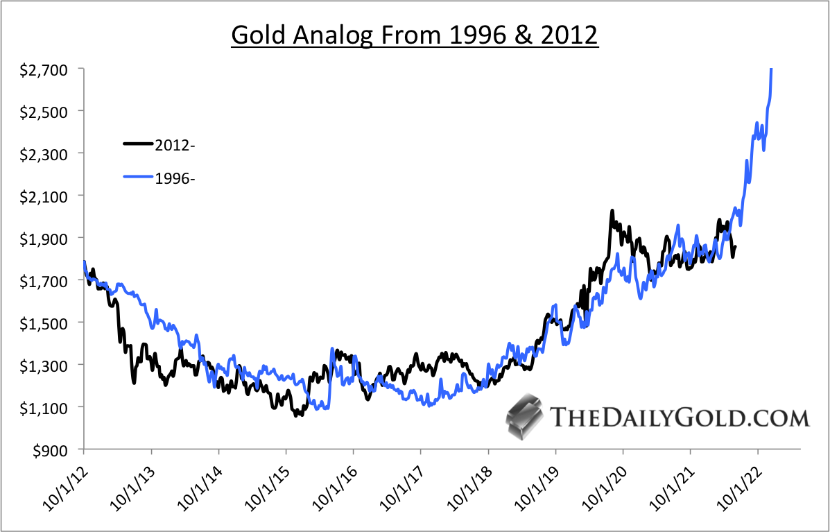 The average and the 2016-2018 analog put Gold around $3000 in two years.