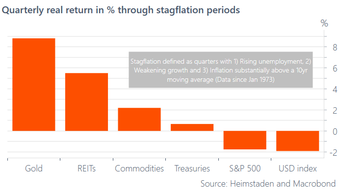 That will coincide with the economy trending towards recession and inflation rolling over. And then you have true stagflation with declining or negative growth, unemployment turning up, and inflation (albeit falling) still a problem.