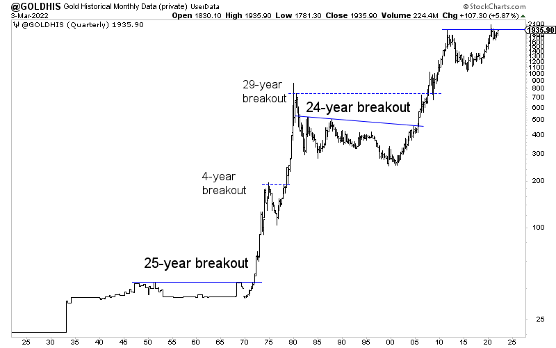 Gold’s history is not quite as clean, but we can see the significance of multi-year breakouts.