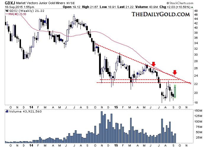 The other scenario is this Fed-induced rebound in precious metals fizzles out and precious metals join global equity markets in a selloff. Although that is bearish, it would be bullish to see Gold decline less than global equity markets. That scenario, given how Gold fared relative to equities in the August selloff, is plausible. Gold traders and investors need to be careful here and put their portfolios in position to take advantage of the next buying opportunity, which could mark the end of the bear. As we navigate the end of this bear market, consider learning more about our premium service including our favorite junior miners which we expect to outperform into 2016.