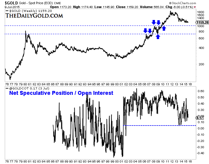 A few weeks ago we noted that it was potentially a very dangerous time for bulls. It still its. However, the closer the miners get to extremely oversold and the closer Gold is to $1000/oz then the closer we are to risk favoring the bulls. It is always darkest before dawn. At somepoint within a few months, the switch will flip and we could have some epic buying opportunities in the precious metals complex. Consider learning more about our premium service including our favorite junior miners which we expect to outperform in the second half of 2015.