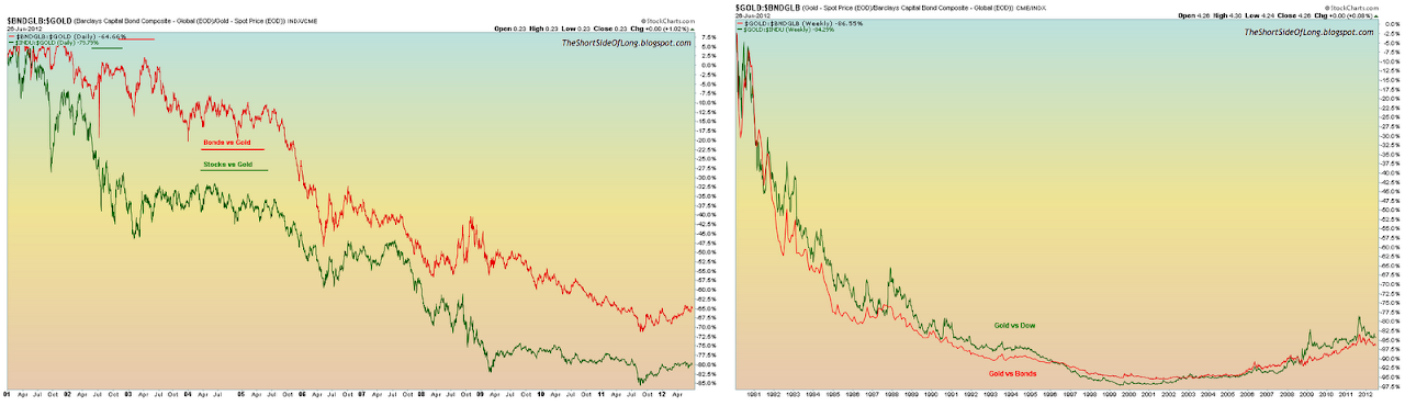 On top of that, Gold’s rise is also definitely undervalued relative to stock bubbles in the last two decades too. While a lot of investors claim that Gold has outperformed stocks bonds and real estate over the last 10 years, in my opinion they are mistaken to think that Gold is overvalued. This is perfectly seen in the chart above. Something interesting occurs when we forward the overall picture back to the days of the last Gold bubble, late 1970s and into early 1980s – all of a sudden, relative to stocks and bonds, Gold is extremely cheap could easily spike enormously from these levels.