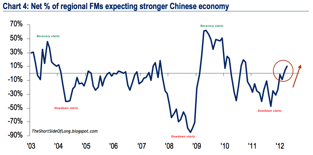 The survey also reported that, against trend seen in global expectations, net percentage of managers thinking that the Chinese growth will improve rose to an 18-month high reading of above 10%. Major Chinese growth recoveries occur when we see close to net 50% of managers expecting the growth to improve and unfortunately we aren’t even close yet.