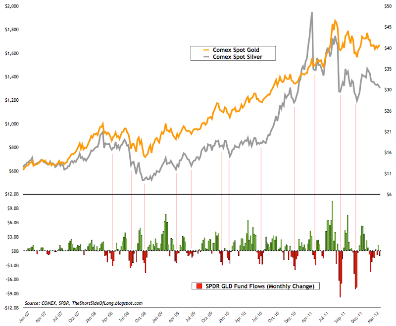This week, we once again have outflows and more selling. This is now one of the highest consecutive weekly outflows since I began collecting data in 2007 (minus one week of inflows last week). Fund flow tracking company called EPFR stated that Gold and precious-metals funds outflows totaled $64 million last week. The week before it was quite the similar picture really, as Gold and precious-metals outflows totaled $11 million. And the week before that? Gold and precious metals outflows totaled $290.3 million, the biggest exit since December 28th bottom. As we can see outflows have been consistent week after week. Retail money is getting out of the PMs market, without a doubt.