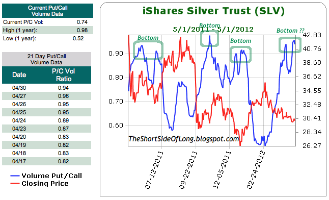 The sharp 1 minute drop during London trading hours in Gold got retail crowd worried that more selling will follow through. Don’t get me wrong, it just might. But what is good to see is that retail investors sold about 5 tonnes of GLD holdings within a day, despite price reversing by days end. Prices have been moving sideways for the best part of March and April in Gold, and yet retail investors are slowly pulling out their physical Gold holdings out of GLD. I do have to admit that we have not seen a drop in physical holdings like during September 2011 and December 2011.