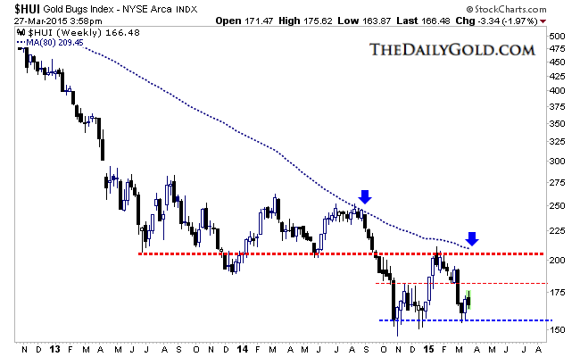 The precious metals complex has established a floor of support over the past five months. For Gold it is around $1150/oz and for Silver it is around $15.50/oz. Pick any miner index and you’ll see the support at the November and December lows. These lows could mark a base of support from which a new bull market takes hold. On the other hand, they could also mark support that if broken could lead to a final but nasty capitulation.