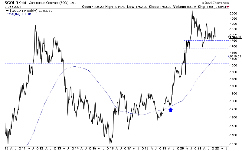 The 40-month moving average has been an excellent trend indicator for decades. It currently sits at $1618.