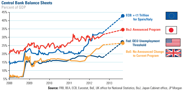 Observing the recent financial reports in my mailbox throughout January, has me convinced that the majority of investment banks have now given up on the Gold bull market. Bloomberg analyst expectations show prices of Gold to be below $1,600 over the next few years. While the correction could go on for awhile longer, I obviously disagree strongly with Wall Street on this one. In his recent newsletter, Frank Holmes showed that just about every major central bank has plans to increase their balance sheets well beyond 2013. In other words, important currencies around the world are being devalued and the only way one can protect themselves in the long run is to own assets which will adjust to this currency devaluation. While some prefer equities and others prefer real estate, history shows that the best way to protect yourself during times like these is to own very rare and mostly precious assets.