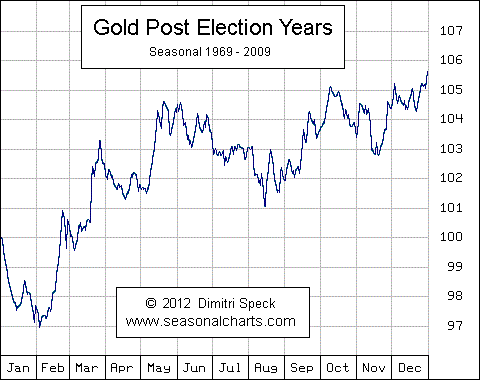 We have just went through an interesting seasonal period for financial markets – the US election. While the US stock markets almost always tends to rally into an election period, Precious Metals tend to decline. More importantly, the post election period tends to be one of seasonal strength for the Precious Metals sector, as seen in the chart above. Usually, some type of an intermediate low occurs at the beginning of February and the current technical triangle could be a perfect catalyst for a price rally.
