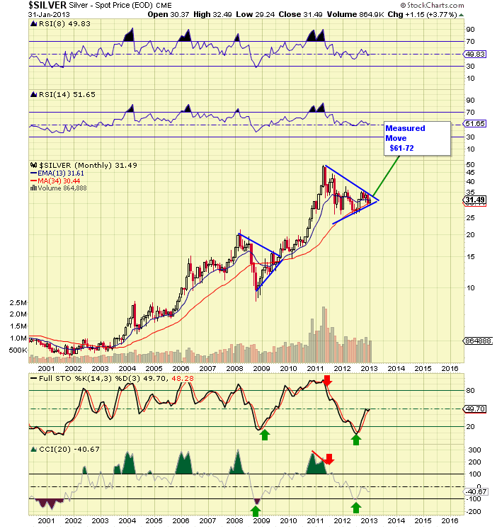 Just to return to its nominal value of $50 per ounce, last seen in January 1980 and April 2011, Silver would have to rally almost 60% from the current levels. That in itself would be an amazing return, but the true value of this speculative metal lays with its possibility to re-test its inflation adjusted highs of January 1980. For that to occur, Silver will have to enter a mania and most likely clock a triple digit handle.