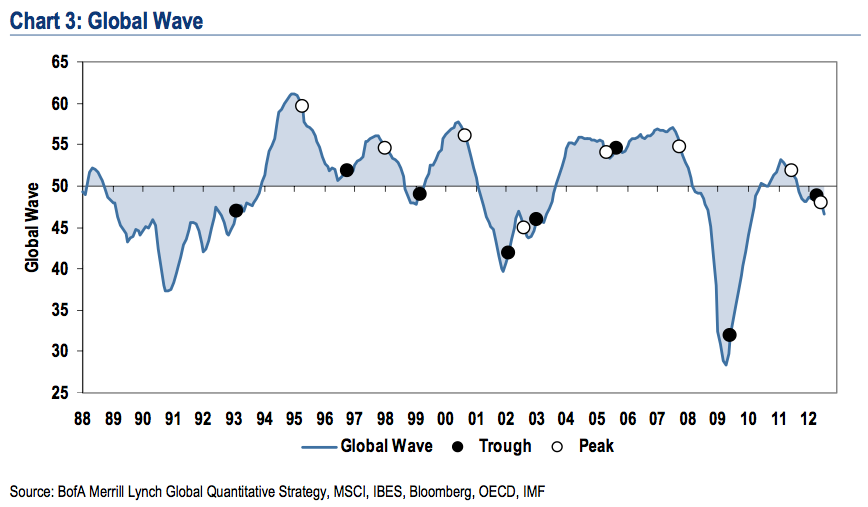 - Merrill Lynch’s Global Wave shows that the most important economic data from all major global economies is pointing to another slowdown or even the beginning of synchronised recession