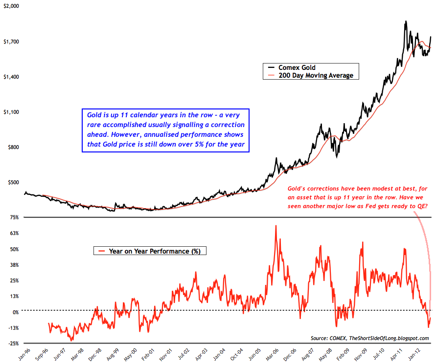 Calling a major low or for that matter a major high, is always a favourite game of retail investors, so I am not going to participate in the guessing game. Gold in particular has me worried, because its corrections have been rather muted at best, over the last decade. I know die hard Gold bugs will argue various technical and fundamental points to have me join their allegiance, but regardless of what anyone says, it is very rare for any asset to be up 11 calendar years in a row. But, to stick with the theme of this article, I admit there is definitely a lot of evidence that we have seen a low in PMs, so let us make that assumption.