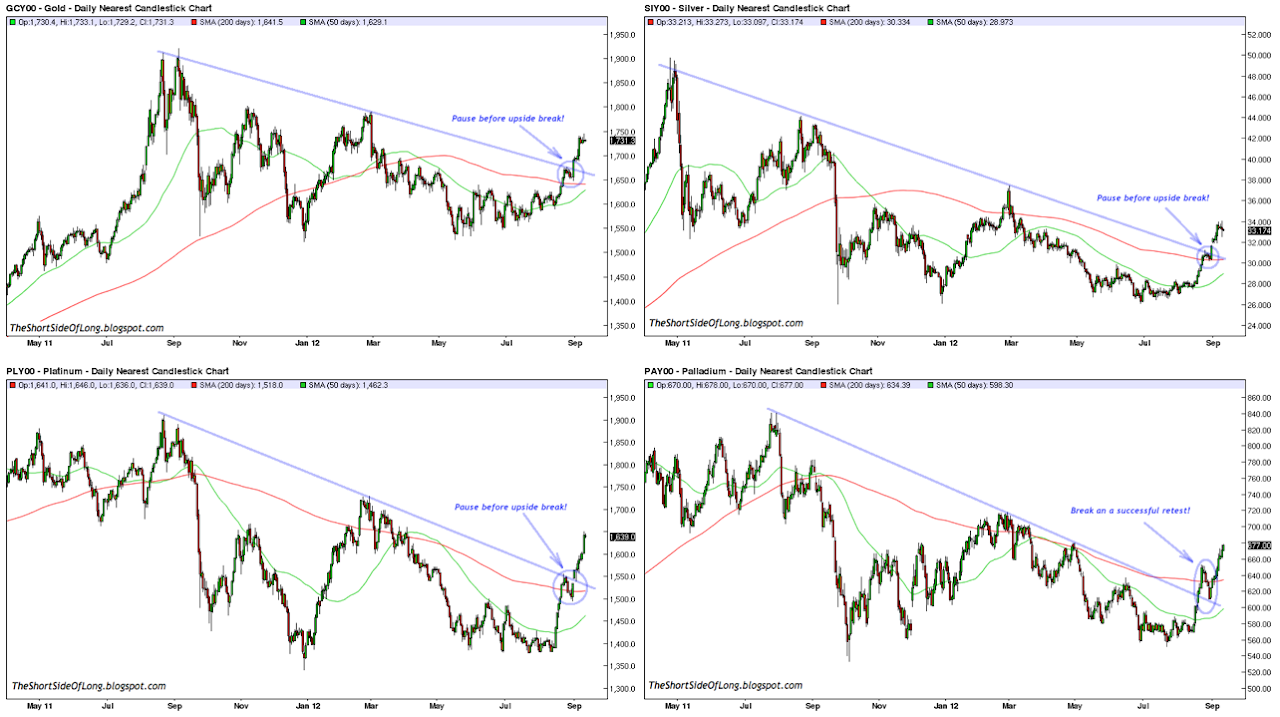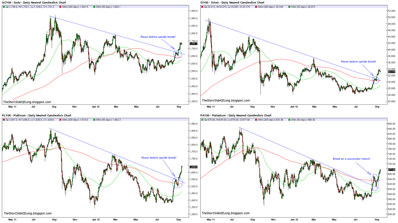 Regardless of what I think, it is much more important to follow the price action. In the chart above we can see that the overall Precious Metals sector, including Platinum and Palladium, has recently broken out on the upside. I have personally participated by purchasing a large amount of Silver at the July lows and a smaller trade position at the August technical break out.