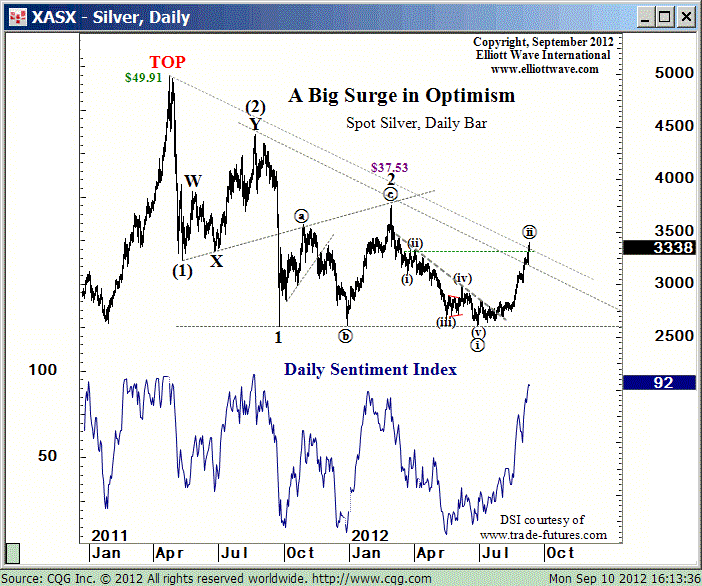 Daily sentiment index (DSI) has hit extreme bullish readings on Gold at 90% bulls and on Silver at 92% bulls.