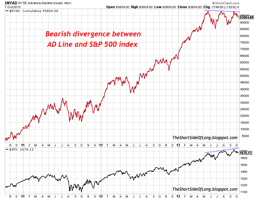 Interestingly enough, NYSE advance decline line (cumulative) has not given us any bearish signals during 2011 top, even though the market crashed by over 19% in August (Russell 2000 was down even more, just like other global indices). So the indicator does not always work properly, but here we are with a first major bearish divergence since 2007. I’m definitely paying attention to the way this indicator is behaving right now and so should you.