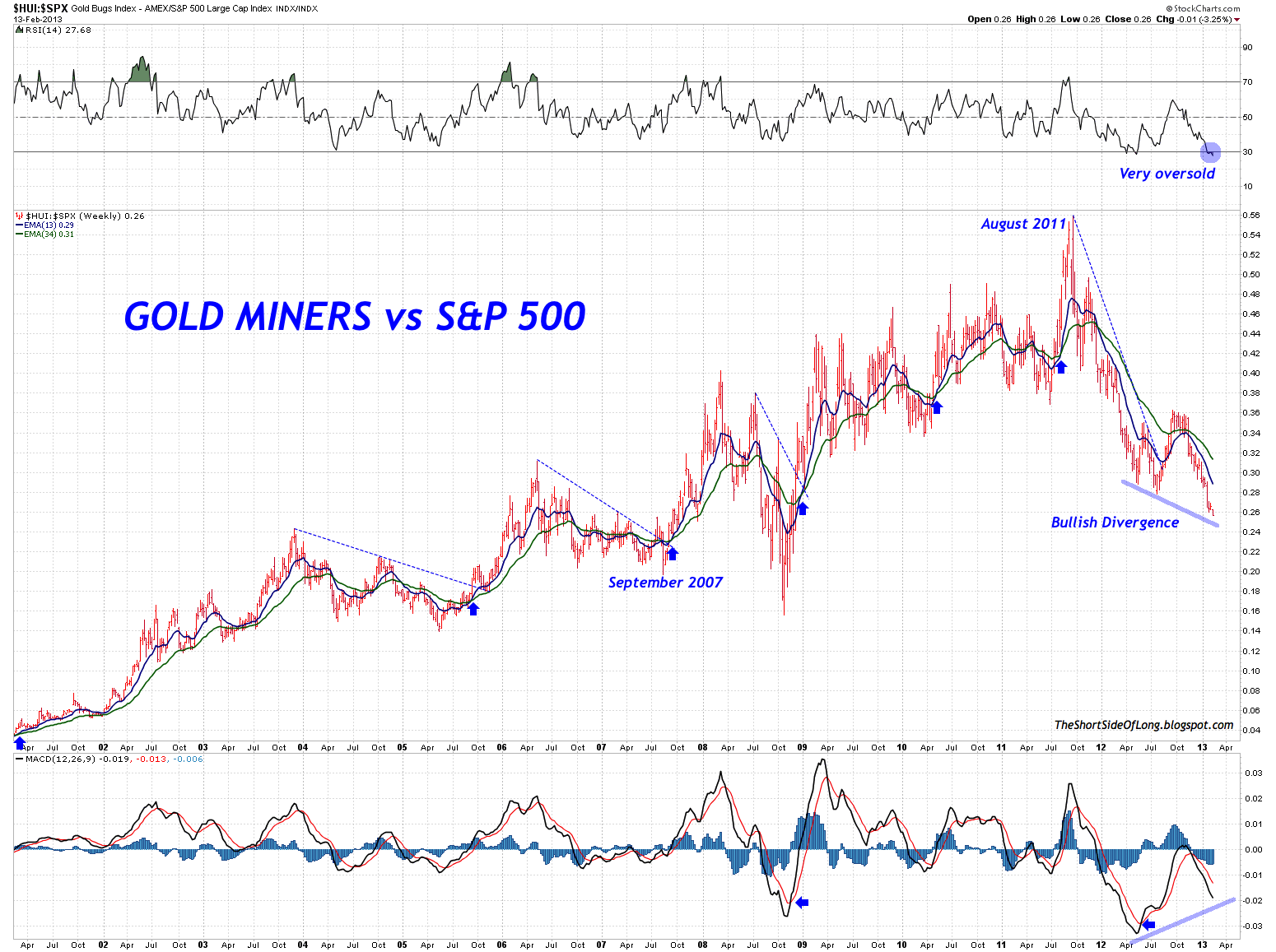 The HUI/S&P ratio is the most oversold its ever been in the bull market. See the chart below. Click Here for a Full View.