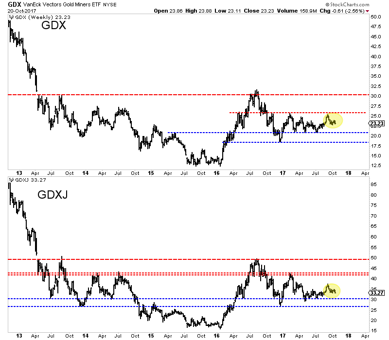 The near-term outlook for precious metals and gold miners especially is negative and traders and investors should therefore stand aside and wait for more favorable conditions. Readers who follow our work are not surprised as we’ve written about the possibility of a weak fourth quarter since the middle of September. That is the bad news. The good news is those who buy weakness in the months ahead could position themselves for a strong 2018. Find the best companies and wait for the sector to get oversold and test strong support. To follow our guidance and learn our favorite juniors for 2018, consider learning more about our premium service.