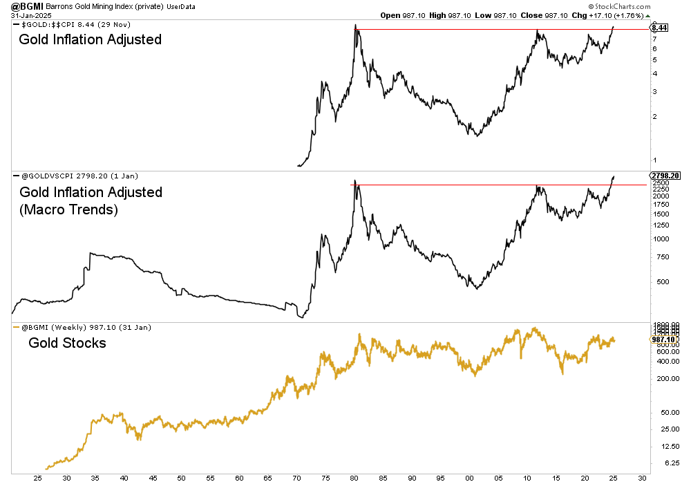 Gold stocks have enjoyed a strong move while Gold has climbed to $2900/oz. The various ETFs and indices have gained 20% since the end of December.