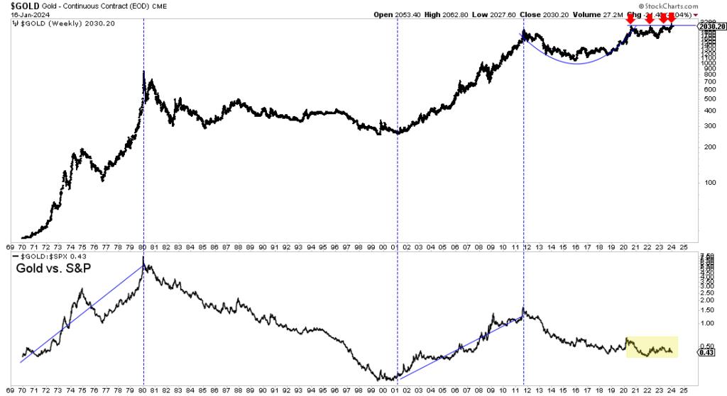 Or, perhaps Gold can only achieve that escape velocity once the stock market cracks and capital flows out of equities and into Gold.