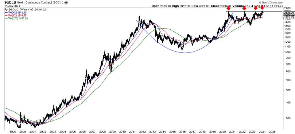 I have been writing about Gold’s super bullish cup and handle pattern since 2021.
