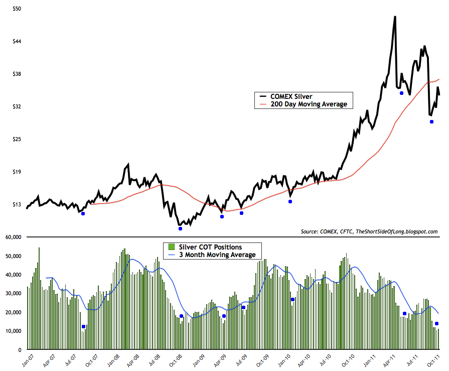 An unknown blog that I check from time to time, which is also a great proxy for perma-bearish outlooks, whose writer always tends to expect every sell off to turn into a 2008 repeat, recently mentioned that too many investors are still optimistic on Silver. Expecting lower prices, the blogger has been saying that he is loading up on long dated Puts on this asset class as of last Friday. Usually the noise from retail investors like these get very loud at the bottom.