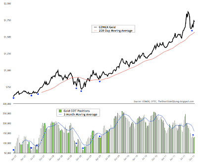 Long term trend check is usually performed with various technical indicators. I prefer to use % distance away from the 200 day moving average. You can use whatever you like or whatever works for your style of investing/trading. One of the reasons I have been hesitant on precious metals, but especially Gold, is because the asset has not traded below its 200 day moving average for almost 3 years now. That is NOT normal. actually, that is quite a rare event in all honesty and does not last forever. Last time Gold gave a decent buy signal with this indicator was around middle to late 2008, as it was bottoming around $680 – $720.