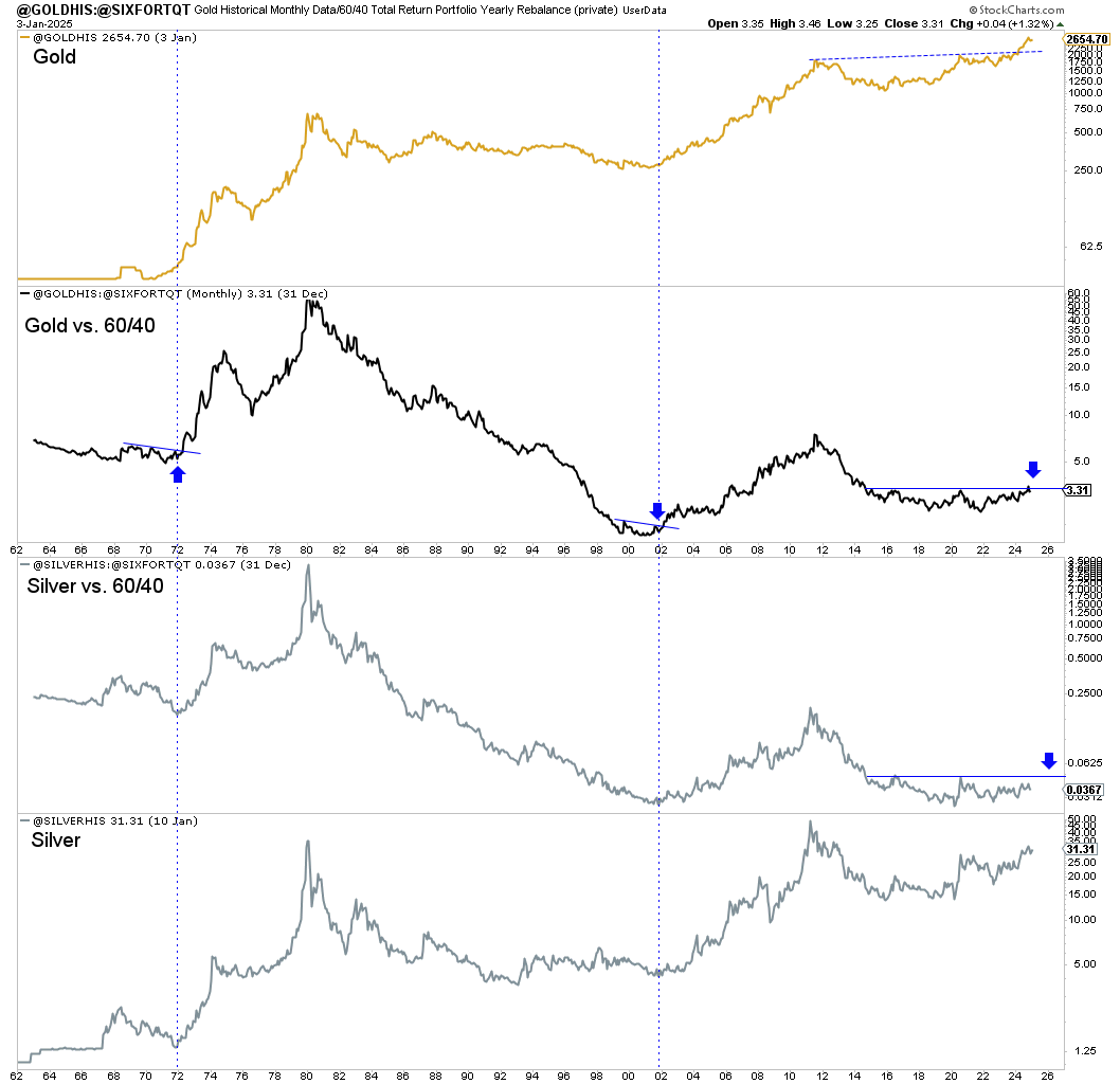 First, is Gold and Silver against the total return of the 60/40 Portfolio.