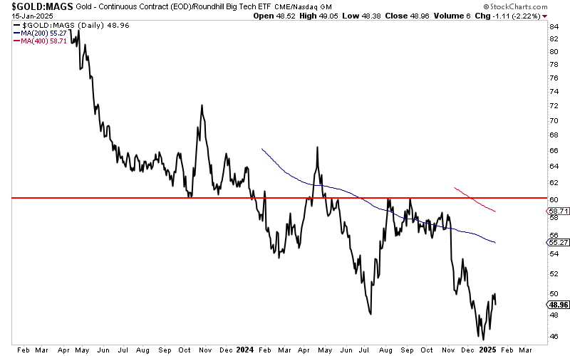 That means Gold needs to break out against the stock market, which means Gold needs to outperform the Mag 7.
