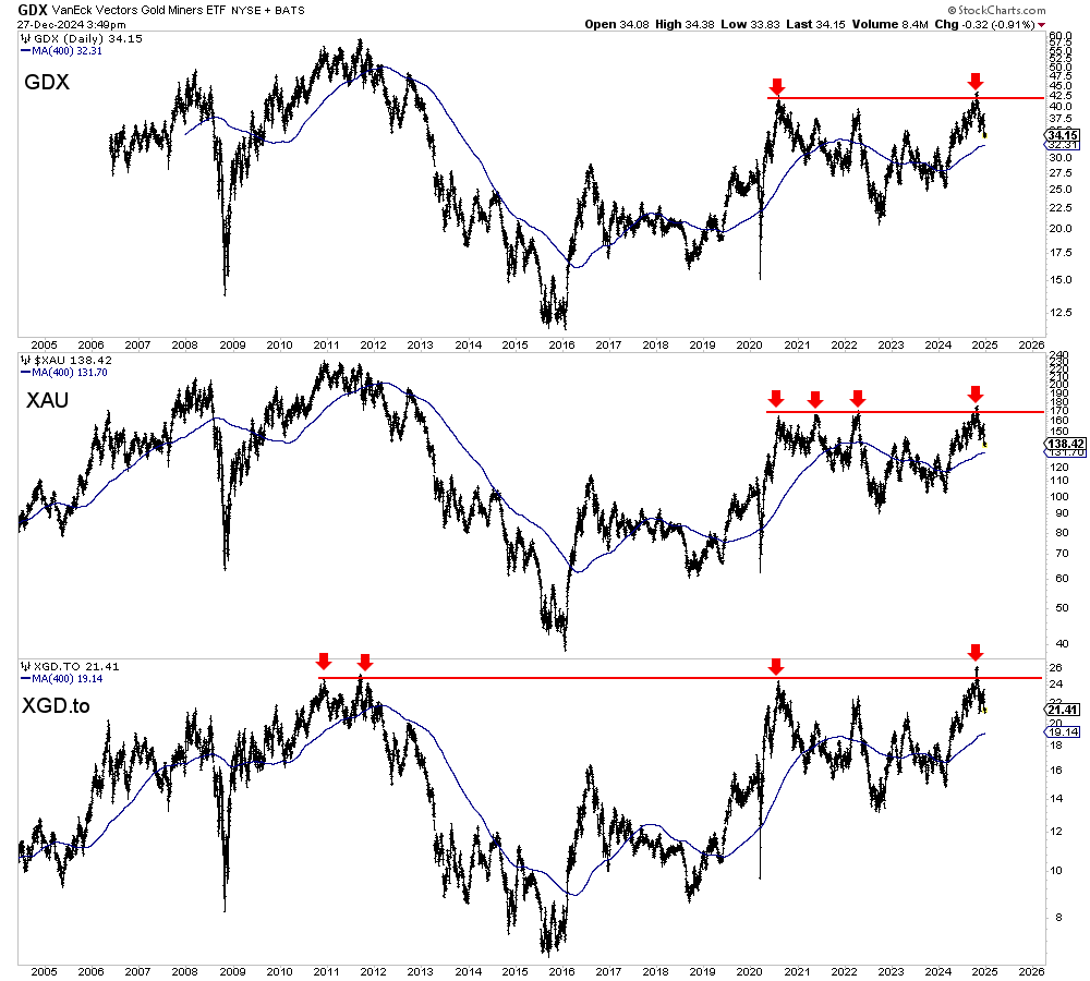 Although the gold stocks have disappointed, they are in position for an explosive breakout in 2025.