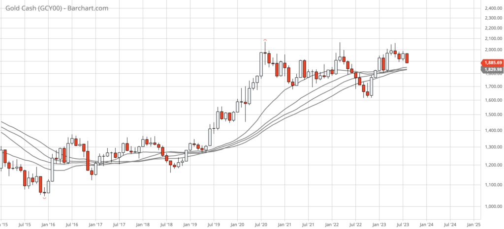 The next strong support is the long-term monthly moving averages in the low to mid $1800s. There is monthly lateral support around $1820.