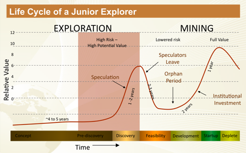 Brent Cook’s image shows a typical life cycle for a junior company that decides to build the mine. Otherwise, the company could be acquired or never make it to the development stage.