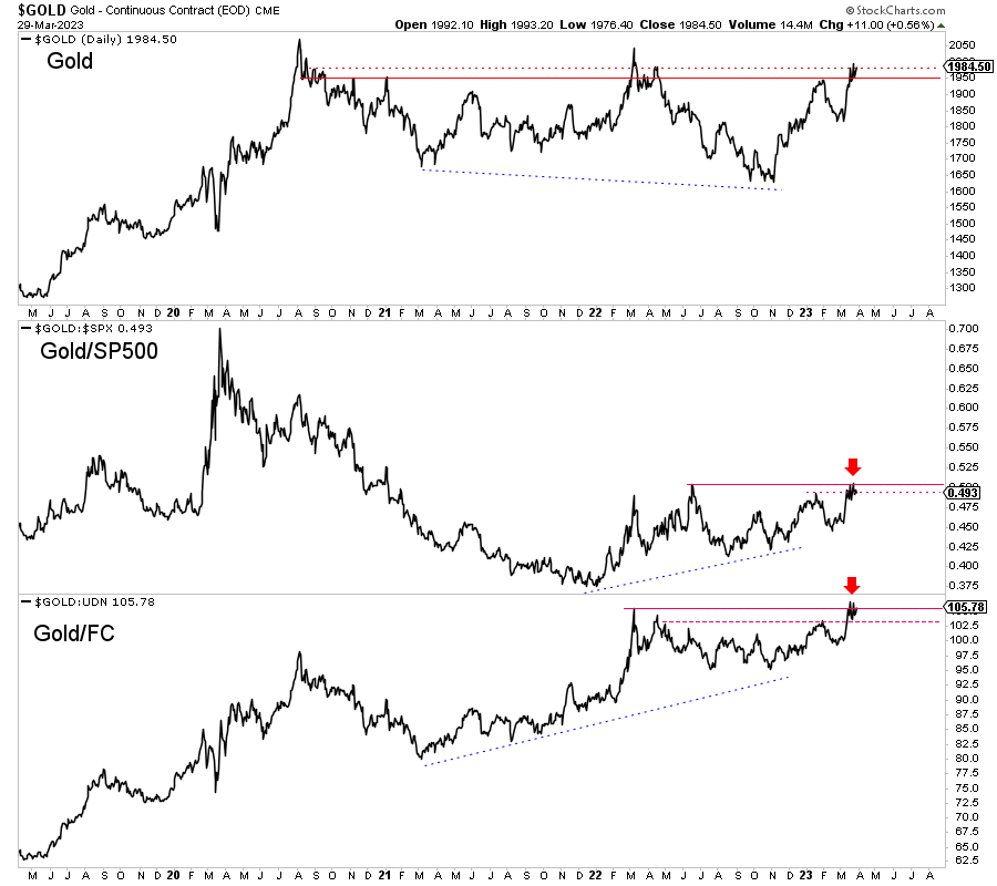 A few weeks ago, I wrote about the importance of Gold’s monthly and quarterly close, $1950 resistance, and Gold’s performance against the stock market and foreign currencies.