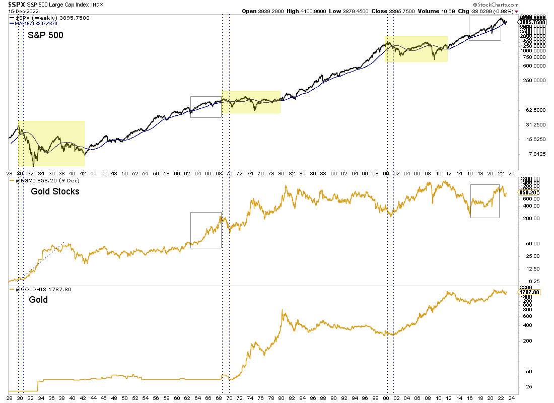 As an aside, the gold stocks performed very well in the 1960s but by that time the US equity bull market had slowed down considerably.
