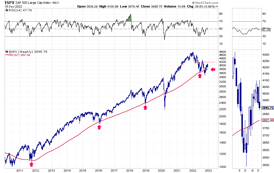 In any case, if the S&P 500 were to lose its 40-month moving average (around 3,800) and lose the recent low of 3,500, it would all but confirm the stock market is in a new secular bear market.