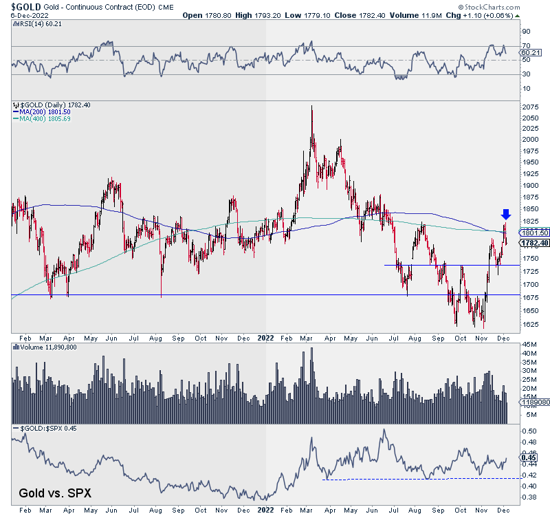 Gold reversed course after trading up to the 200-day and 400-day moving averages just above $1800.