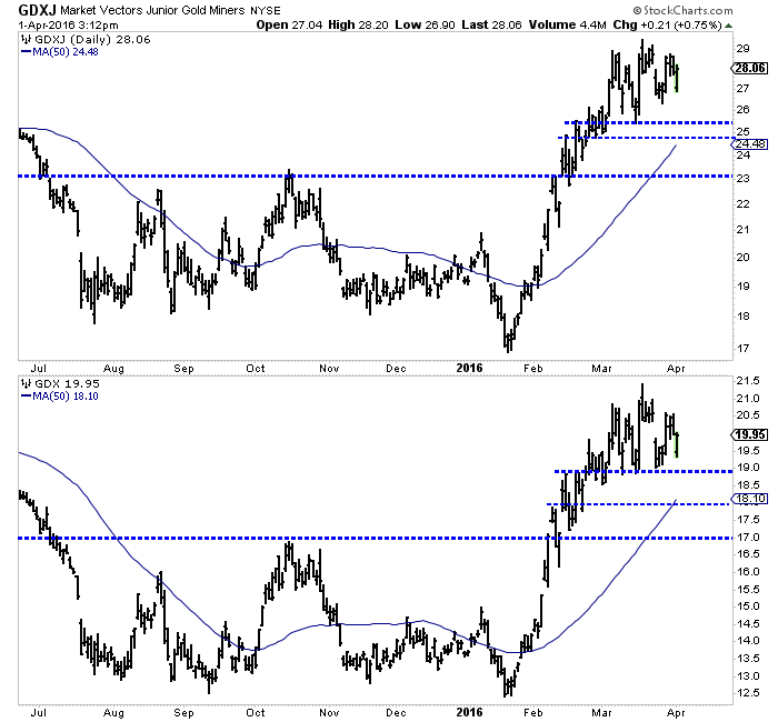Gold Stocks enjoyed a fabulous, near vertical rebound into March yet were in extreme overbought territory. We and many others called for a correction. In recent weeks those other voices have worried excessively about the alleged bearish construction of the CoT. Although Gold and Silver have essentially consolidated with a little weakness, the gold stocks have continued to hold above even initial support. Over the past month they have corrected through time rather than price. The longer gold stocks hold above initial support, the greater the chance they are building a bullish flag consolidation.